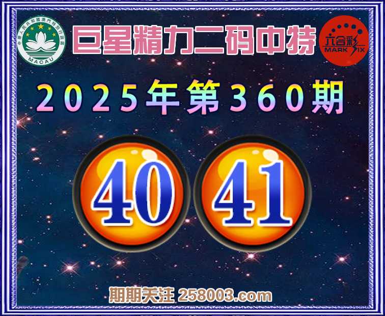 360期:〖巨星精力〗 🍧二码中特🍧【40.41】开:41准上榜高手