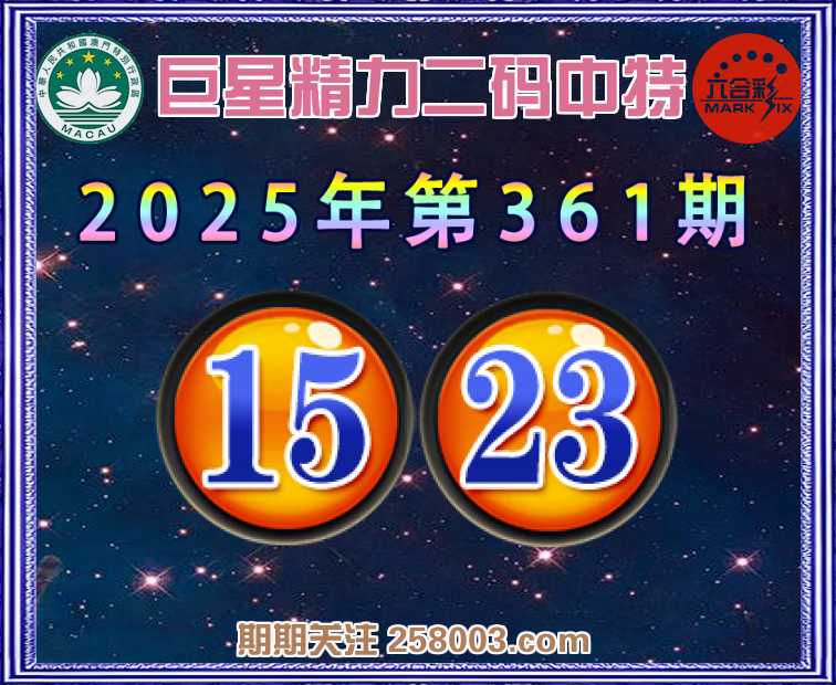 361期:〖巨星精力〗 🍧二码中特🍧【15.23】开:24